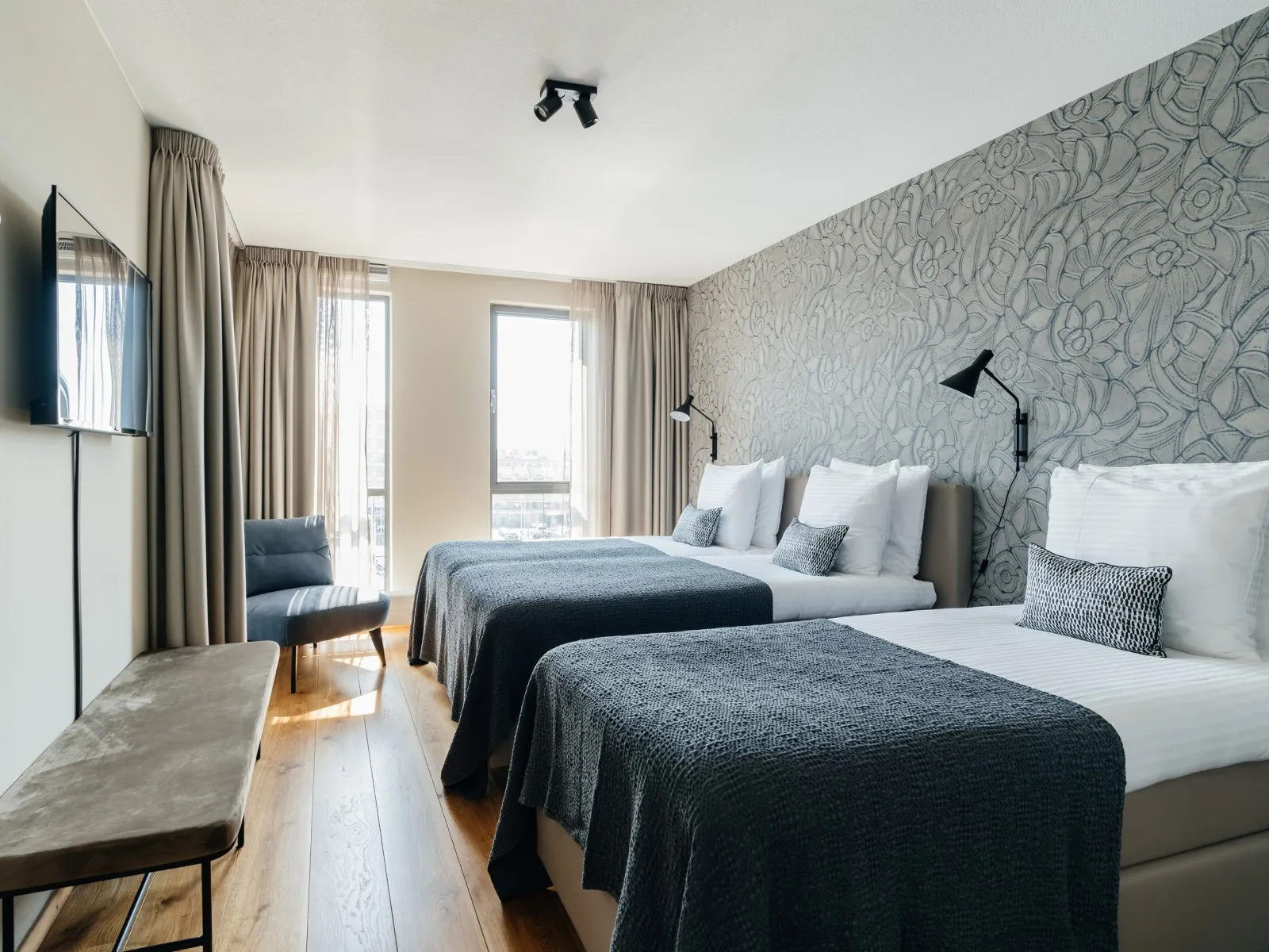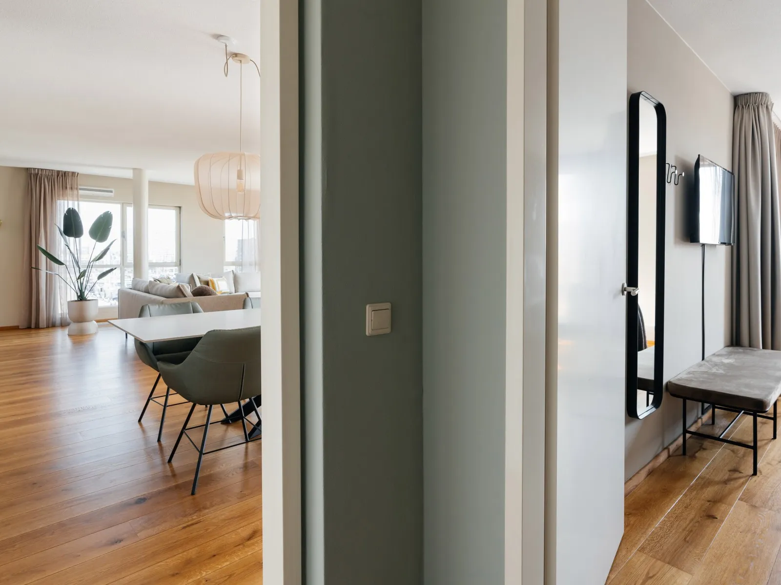 The BizStay Harbour no. 12 apartment is a truly remarkable gem. This spacious 2-bedroom apartment, covering 116 square meters, offers breathtaking harbour views from three sides. The apartment boasts a delightful balcony overlooking the harbour, providing a picturesque view of the boats coming and going. The interior of the apartment is exquisitely designed and furnished to the highest standard, ensuring a luxurious experience. It offers essential amenities, including high-speed internet, a large SMART TV, a fully equipped kitchen, a spacious bathroom, a separate toilet, and private laundry facilities with a washer and dryer. With two bedrooms, the apartment can comfortably accommodate up to five people. The comfortable box spring beds in each bedroom ensure a good night's sleep. Each bedroom also features a SMART TV. A desk is provided, making the apartment suitable for both work and leisure and perfect for both short and extended stays.